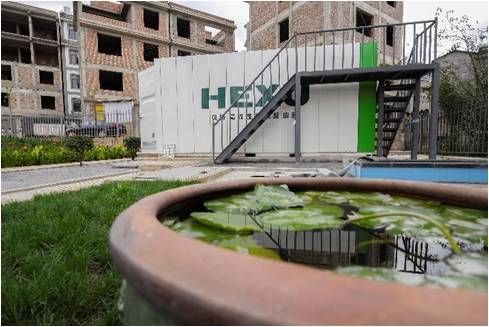 2017年,在原有氧化塘位置安裝合續環境貝斯設備,涵蓋150戶居民的生活污水處理。