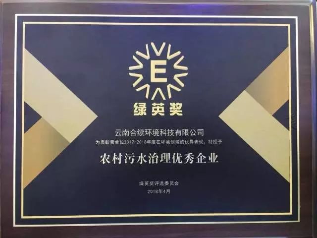 合續環境榮獲“綠英獎—農村污水治理優秀企業”榮譽稱號