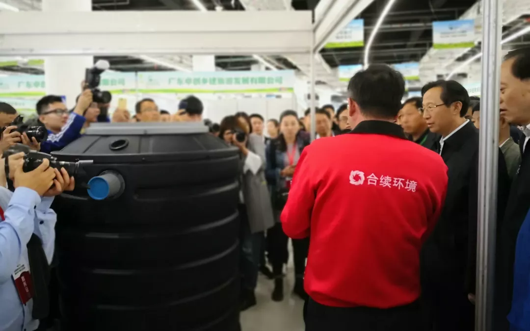 在本次展會上,合續環境結合當前市場需求,重點展示了合續環境在農村衛生廁所領域獨具匠心創新研發的成果和能力。其中就有二代中國罐、化糞池、廁屋標準版和豪華版。當天一經亮相,隨即成為展會現場的一道亮麗風景,中國罐更是再次成為奪目明星,新的視覺設計和分戶處理就地回用的處理模式吸引了大批現場觀眾以及媒體在合續環境展位前駐足、咨詢。農業農村部部長韓長賦特別視察我司中國罐,對合續產品給予了充分的肯定。