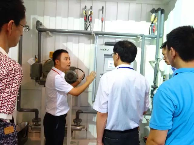 環(huán)境工程博士后裴主任正在為采訪者介紹耐斯-小型水凈化設(shè)備。