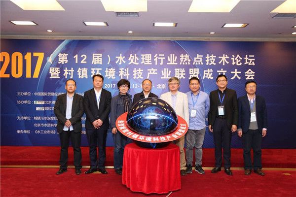 2017年4月13日,第十二屆(2017)水處理行業熱點技術論壇于北京隆重開幕,行業內眾多領導、專家蒞臨現場。在到場幾百名嘉賓的見證下,舉行了村鎮環境科技產業聯盟成立儀式,并現場向聯盟首批成員單位授牌,合續環境榮膺聯盟副理事長單位。