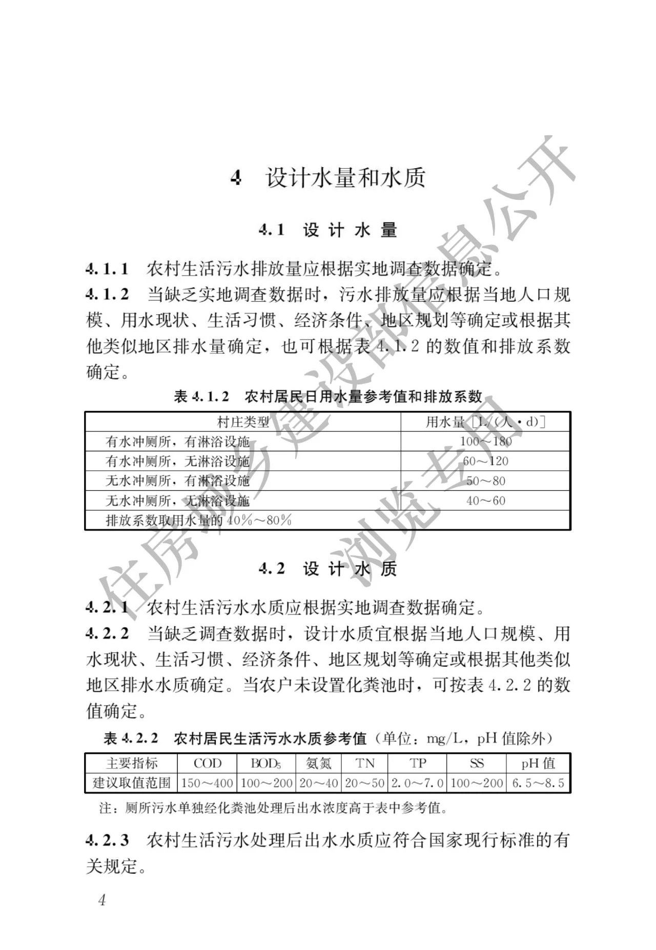 2.設計水量和水質。不同地區農村生活習慣、生活水平、氣候條件、水源、水資源結構的差異,導致農村污水排放和水質差異較大,難以給出具體的設計值。標準所列的數據范圍僅在沒有基本數據的情況下供當地參考。實地調查應是確定農村污水排放和水質的首要選擇。
