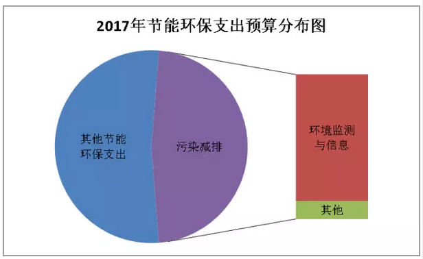 在2017年的節能環保支出預算分布中(圖2),我們可以發現污染減排占了將近一半(47.5%),而這其中環境監測與信息部分又占了絕大部分(87.5%),且比2016年的預算高出55.2%。如此看來,2017年環保部在環境監測方面將更加嚴格。對于一些擁有環境監測業務的企業,如雪迪龍、聚光科技等,看好他們在PPP模式下多接訂單,實現企業實力的提升。