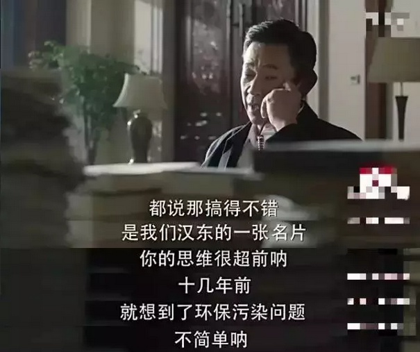 記得沙書記去參觀林城開發區時,表揚了達康書記:“達康同志,你的思維很超前吶,十幾年前,就想到了環保污染問題,不簡單吶!”