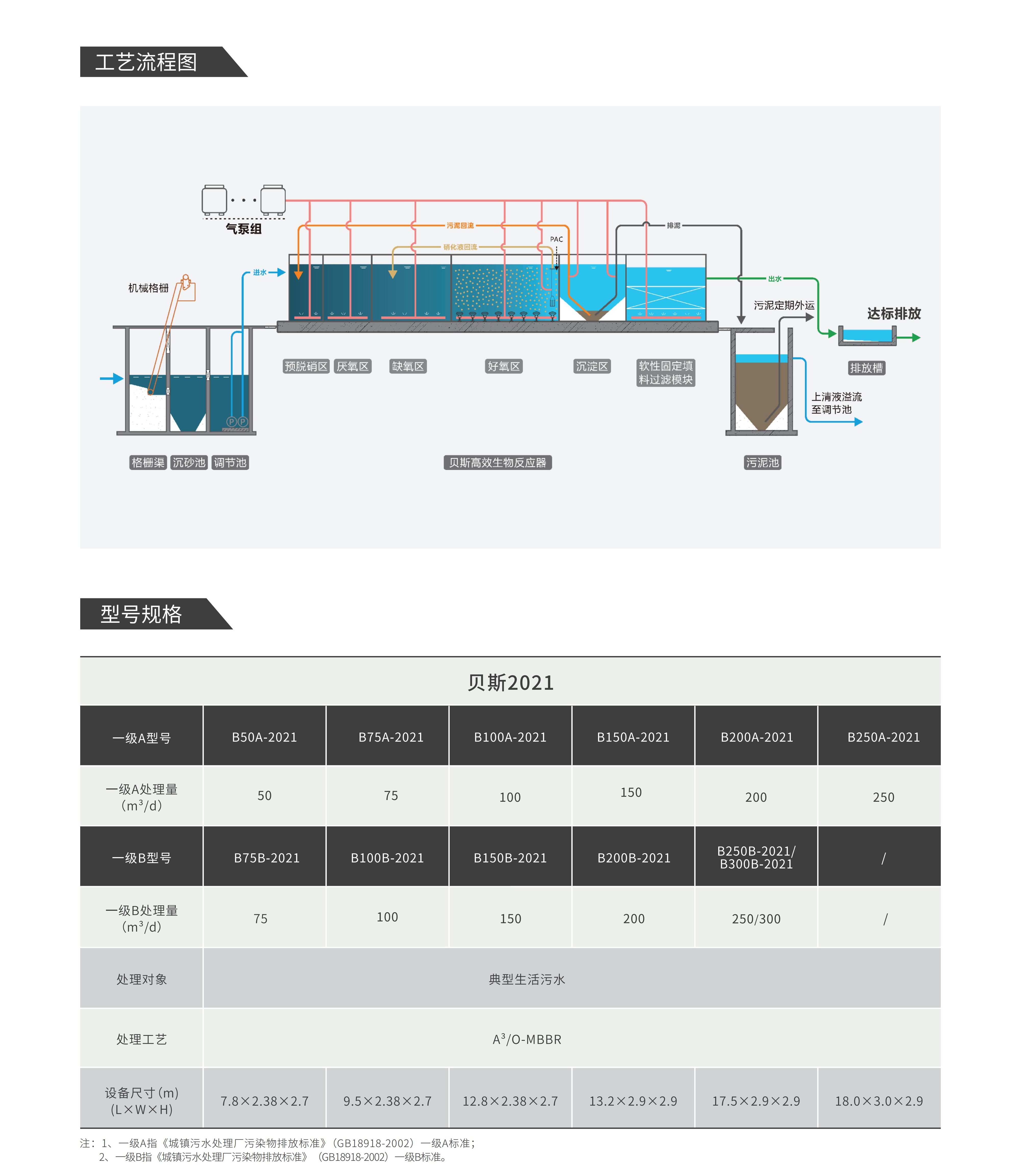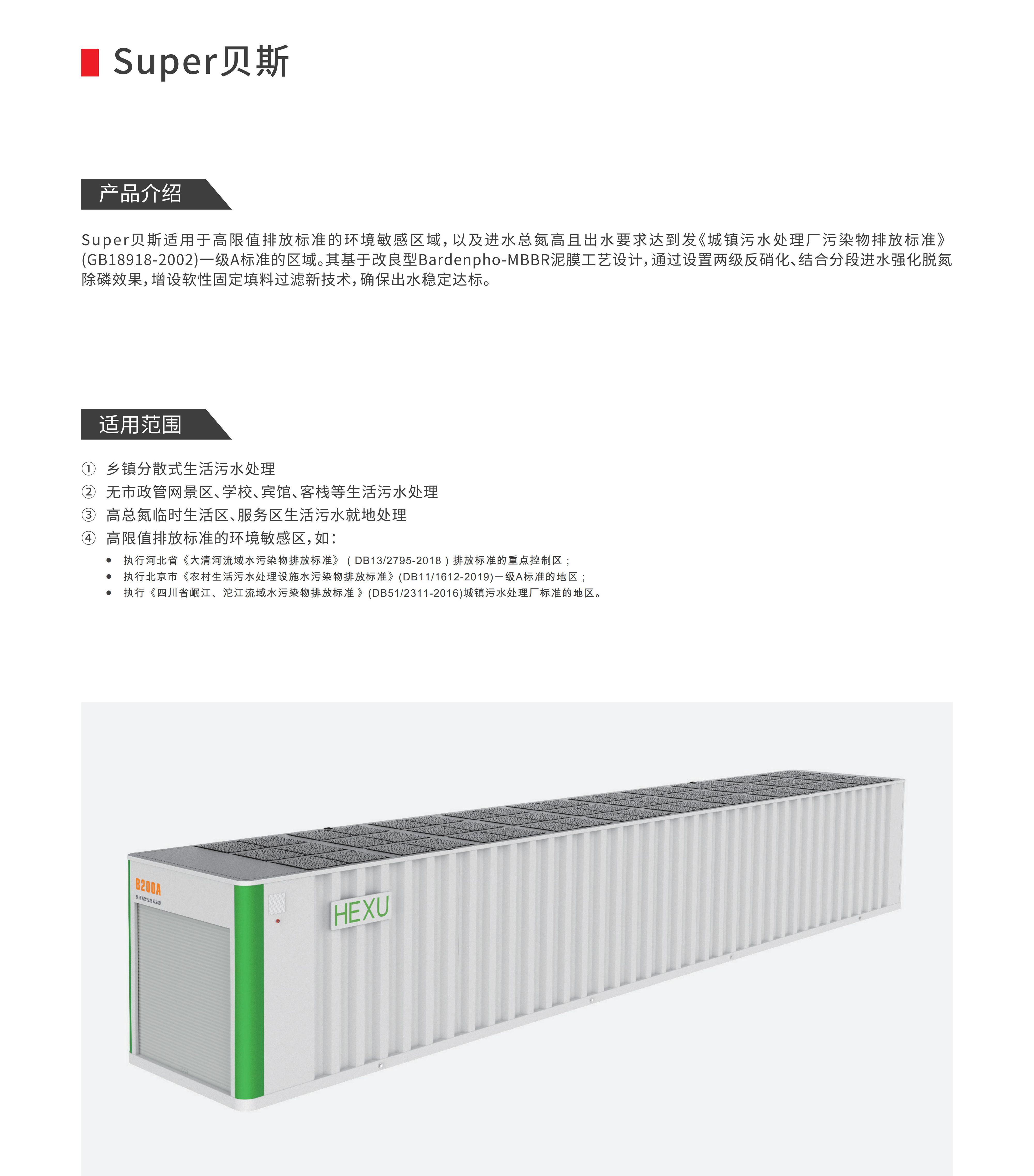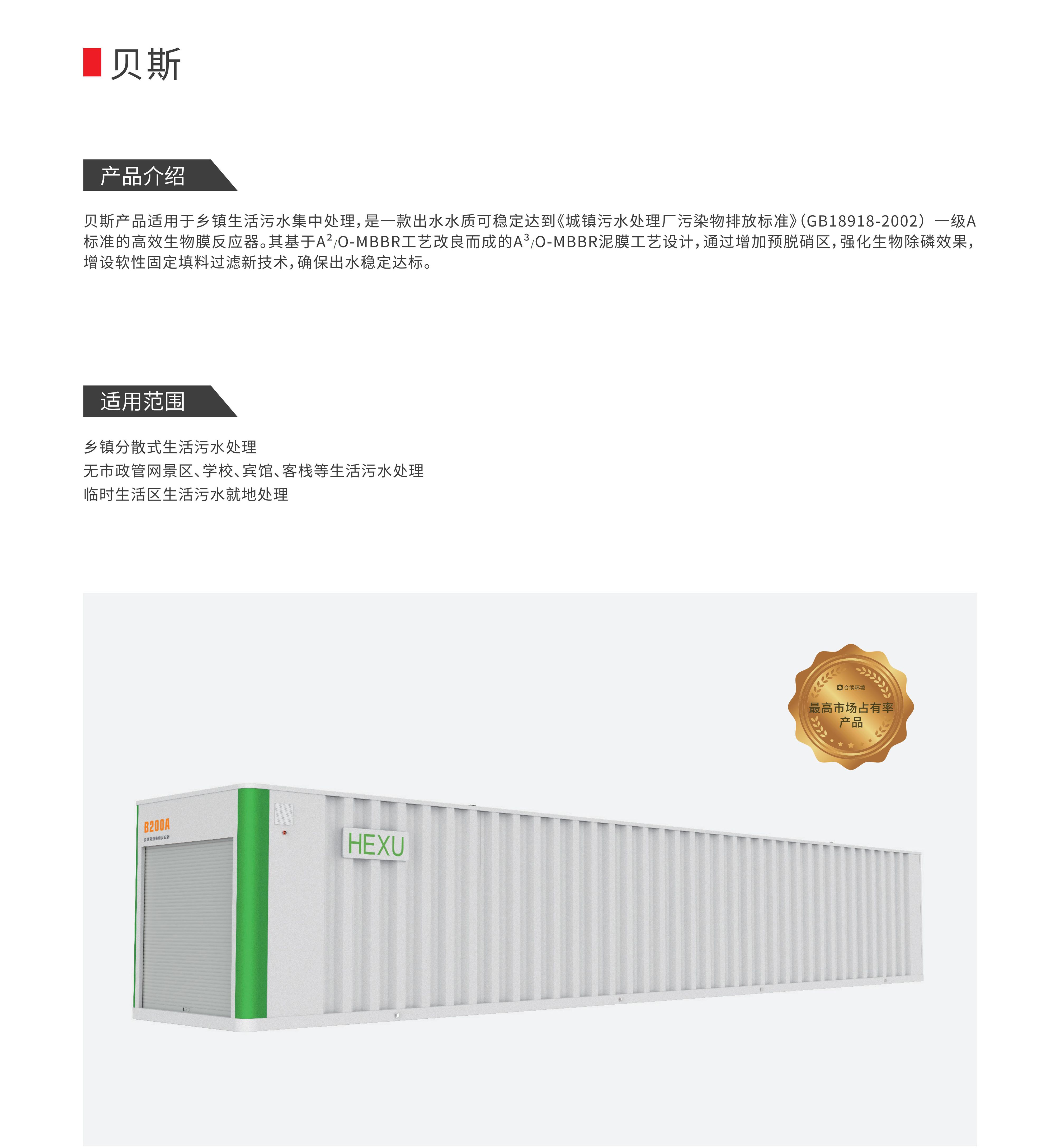 貝斯產品適用于鄉鎮生活污水集中處理,是一款出水水質可穩定達到《城鎮污水處理廠污染物排放標準》(GB18918-2002)一級A標準的高效生物膜反應器。